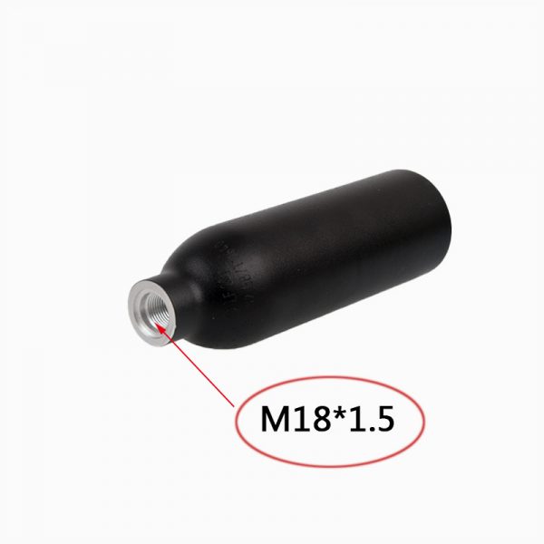 Choose our 0.25 Liter Black Flat Bottom Aluminum Gas Cylinder and you’ll have high pressure working capability and a lightweight design. The cylinder is manufactured from high-quality aluminum alloy for durability and reliability. The thread specification is M18*1.5, which is convenient for connecting with other equipment. The working pressure is 300bar/4500psi, which is suitable for various high-pressure gas application scenarios. The diameter is 60 mm, the height is 195 mm, and the wall thickness is 6.2 mm, providing a solid structure and safety. The net weight is 0.58 kg, and the lightweight design makes it easy to carry. Finished in matt black for a stylish look while providing extra durability and protection. This cylinder is your reliable companion, whether it is used in outdoor activities, sports competitions or other applications.